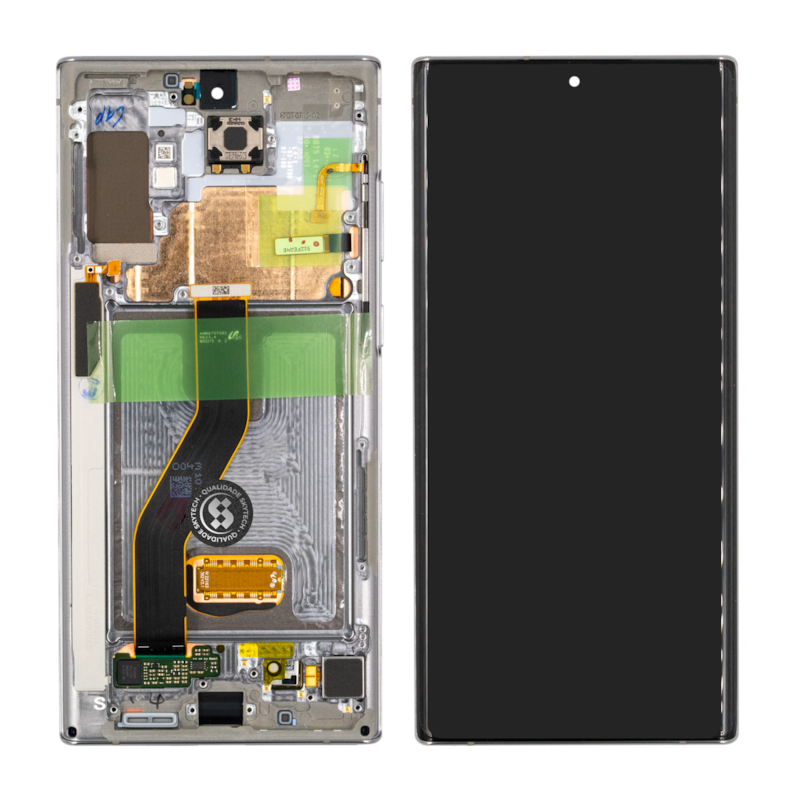 Restaure a tela do seu aparelho com a FRONTAL SAMSUNG GALAXY NOTE 10 PLUS SKYTECH PRO COM ARO - PRATA. Produto compatível, novo e com excelente qualidade, ideal para reposição em assistências técnicas e técnicos especializados.