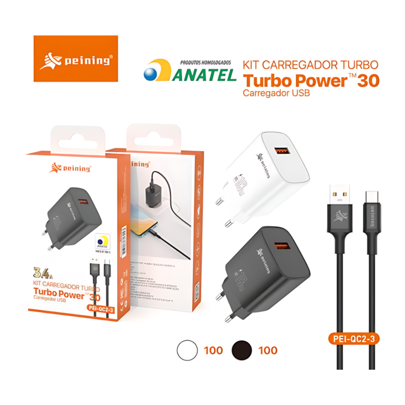 Melhore a experiência de uso do seu aparelho com o acessório KIT FONTE USB + CABO USB PARA TIPO C TURBO 3.4A PEINING PEI-QC2-3 - BRANCO. Produto novo, prático e ideal para o dia a dia, oferecendo mais conforto e funcionalidade.